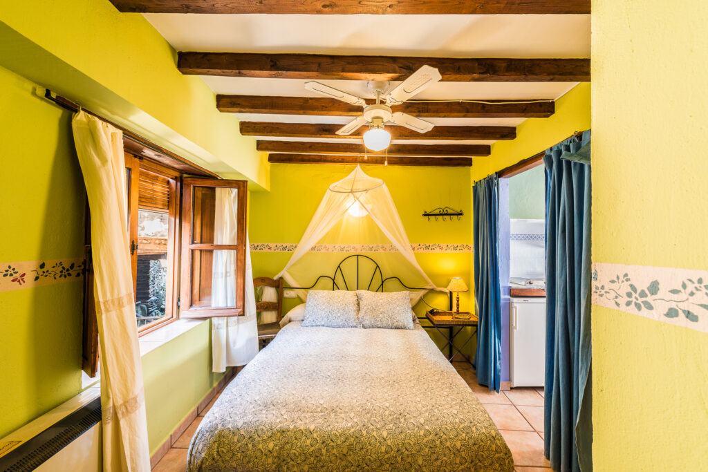 Apartamento especial para dos personas, con cama de 1,50 cms. Salón independiente con un gran ventanal de madera en una de sus paredes, sofá-cama y baño con Ducha. aire acondicionado y ventiladores de techo y cocina americana. Salón con ventana. Capacidad 2/4 plazas.