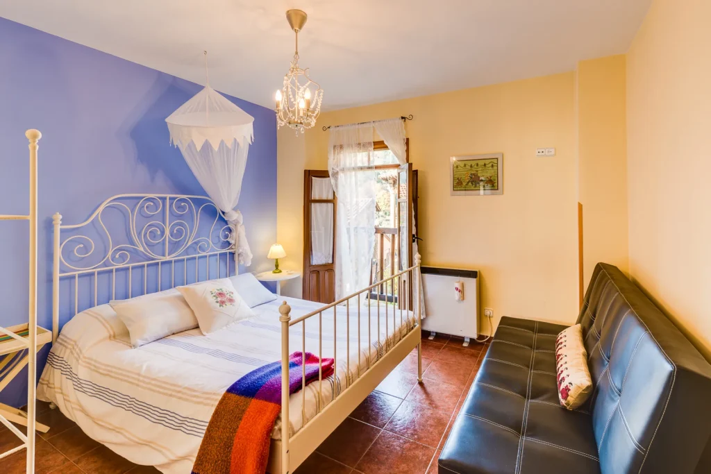 Dentro de sus muros, Casa Rural Valle del Arrago ofrece un espacio generoso y acogedor para sus huéspedes. Con cuatro dormitorios dobles, la casa invita a grupos y familias a descansar y rejuvenecer en un entorno donde el tiempo parece detenerse. El amplio salón con chimenea se convierte en un punto de encuentro, donde las conversaciones fluyen al calor del fuego y los lazos se fortalecen.